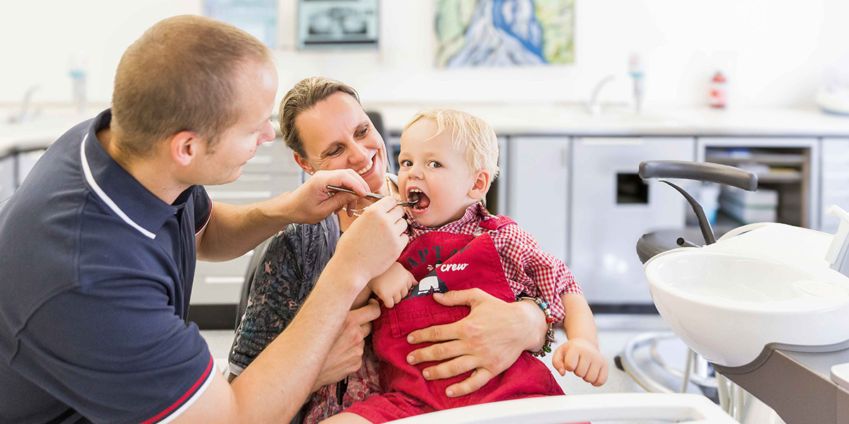Kinder sollte man bereits um den ersten Geburtstag das erste Mal zum Zahnarzt mitnehmen. Dabei können frühzeitig Fehlbildungen und die ersten Milchzähne kontrolliert werden. So werden die Kleinen schon frühzeitig mit dem Zahnarztbesuch vertraut gemacht.